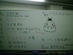 後半は、一年生で新歓に使うけんたろうに持たせる紙に下文字を書いてました。